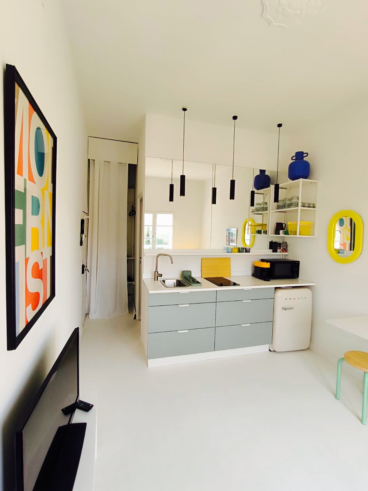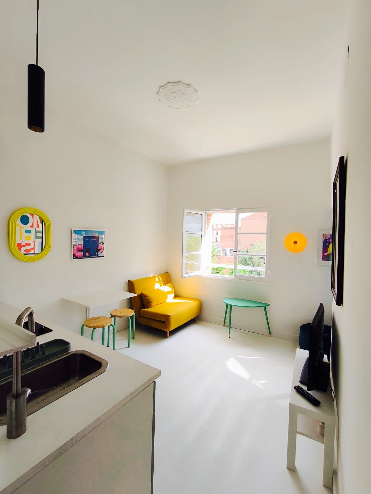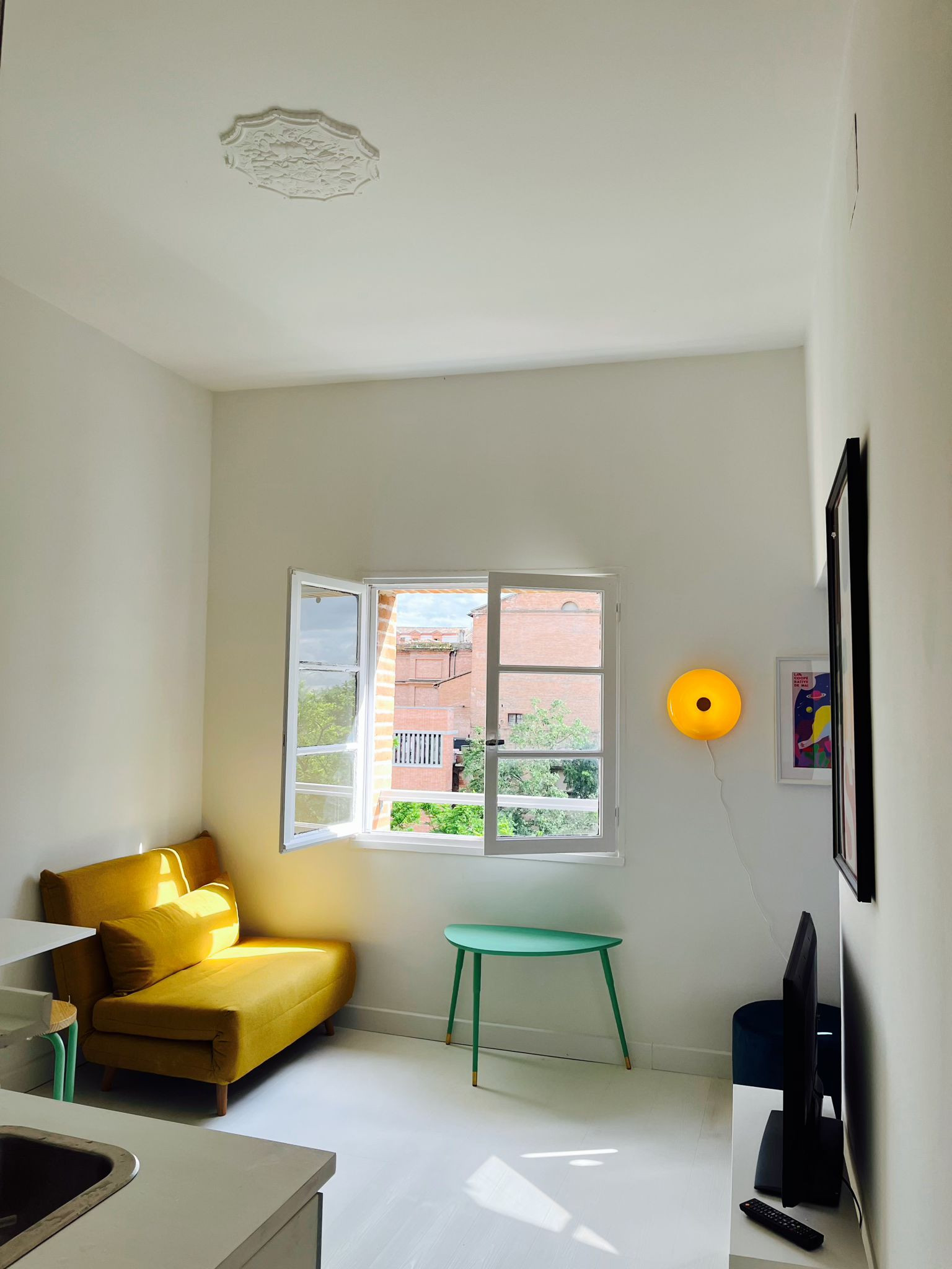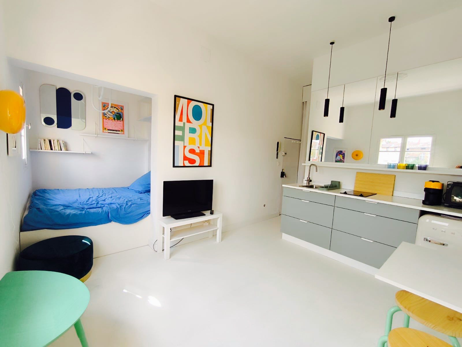 À louer appartement très lumineux de type T1 bis avec espace nuit (lit en 160) refait à neuf avec vue sans aucun vis à vis.