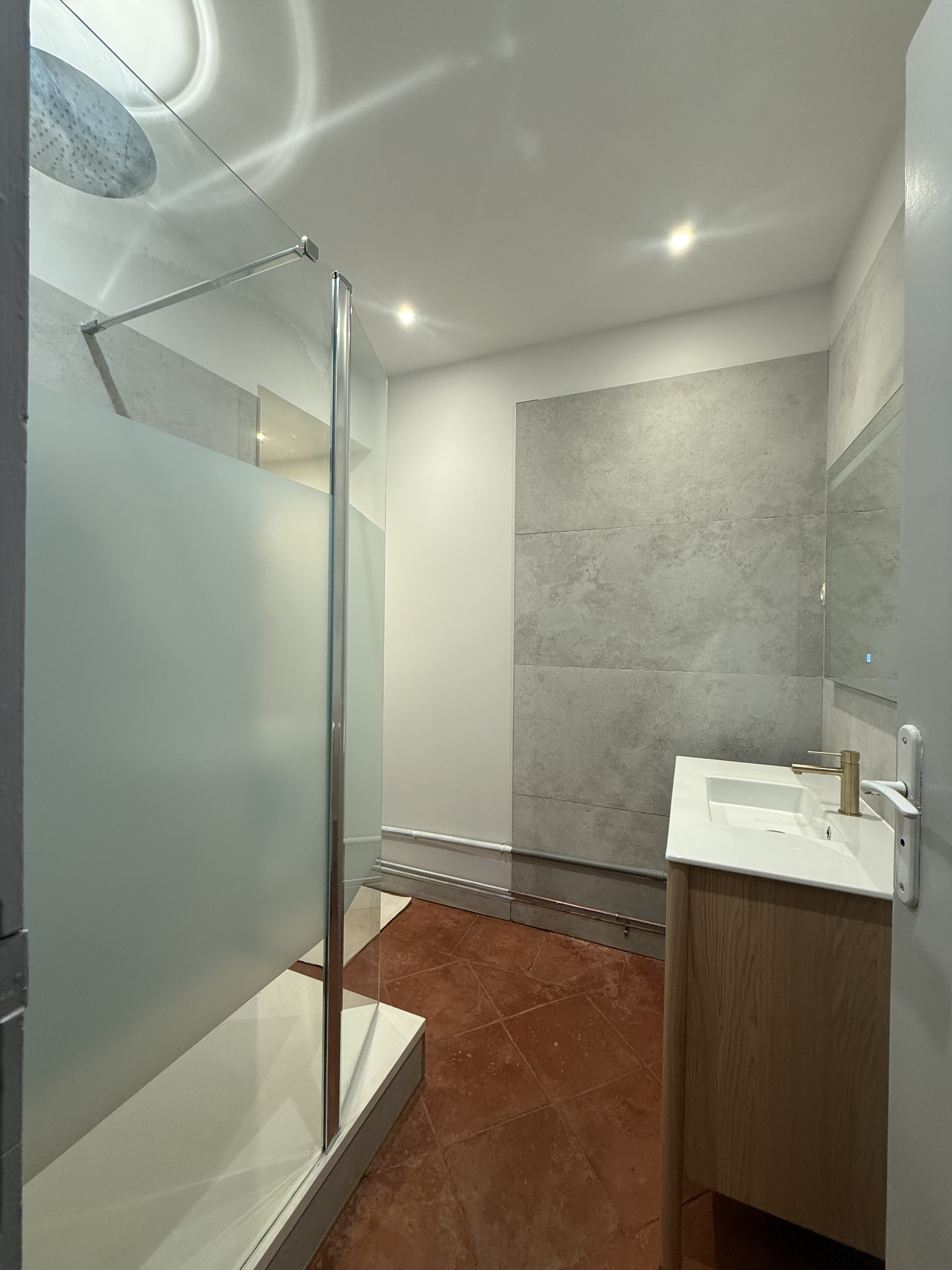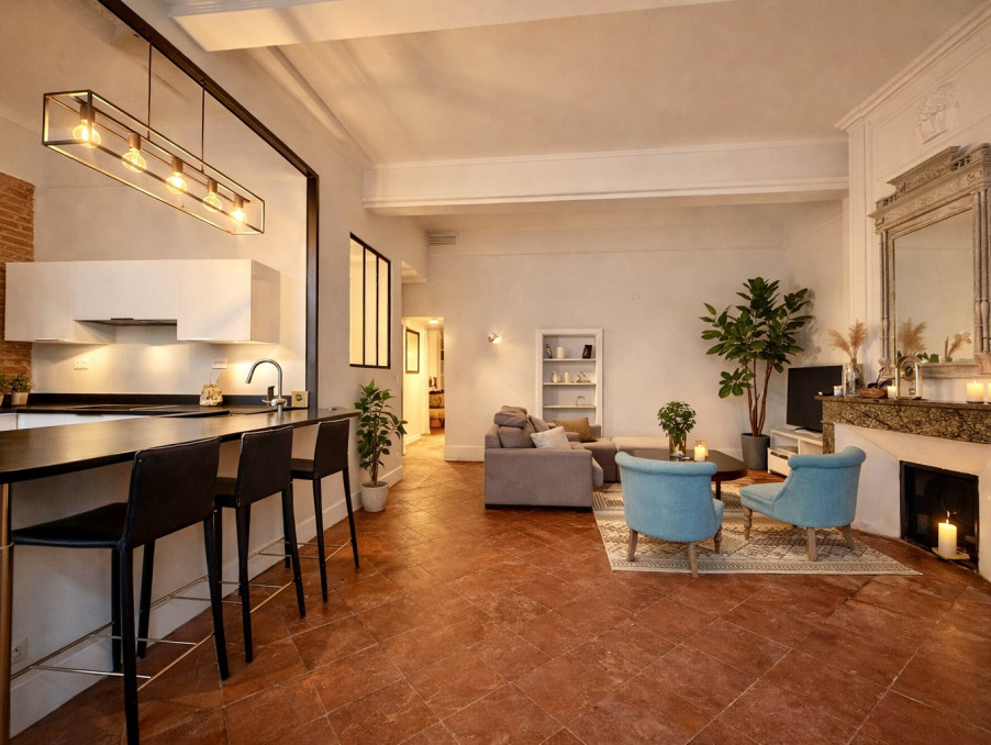 Rénové avec goût, il offre une grande pièce de vie avec cuisine équipée ouverte, deux espaces nuit possibles, une salle d'eau moderne et de beaux volumes avec le CHARME DE L'ANCIEN (tommettes, hauteur sous plafond).