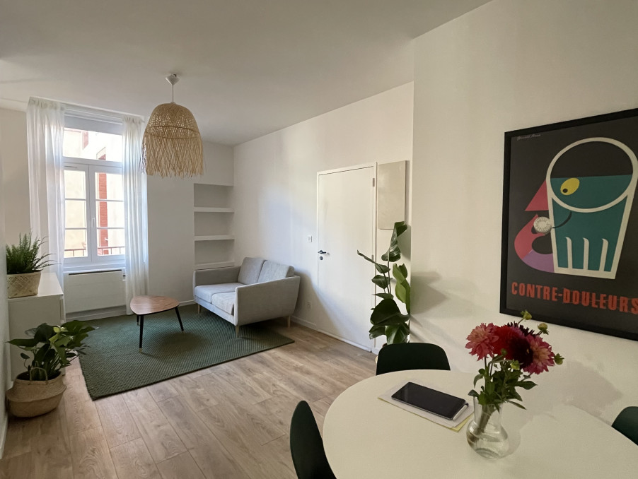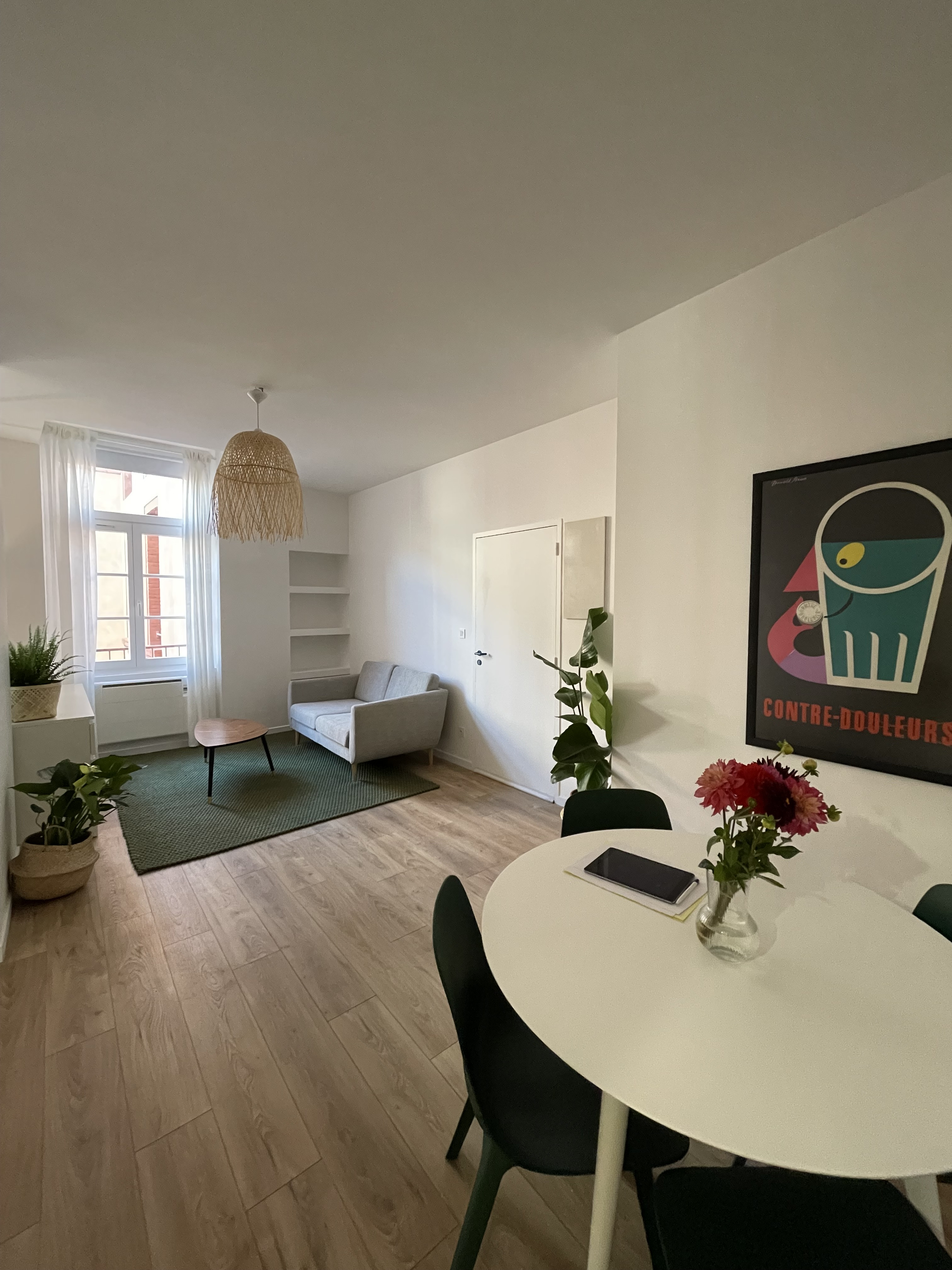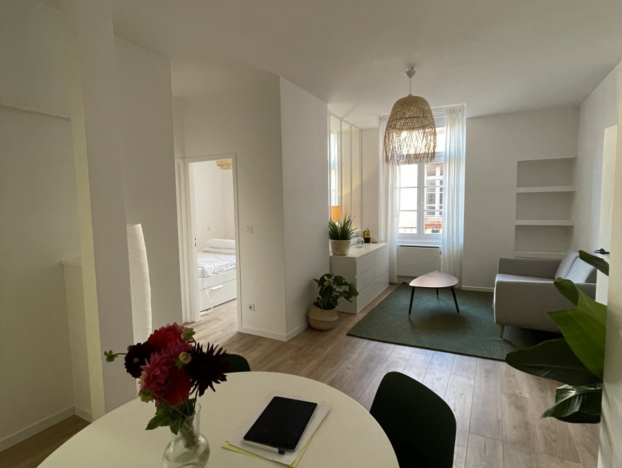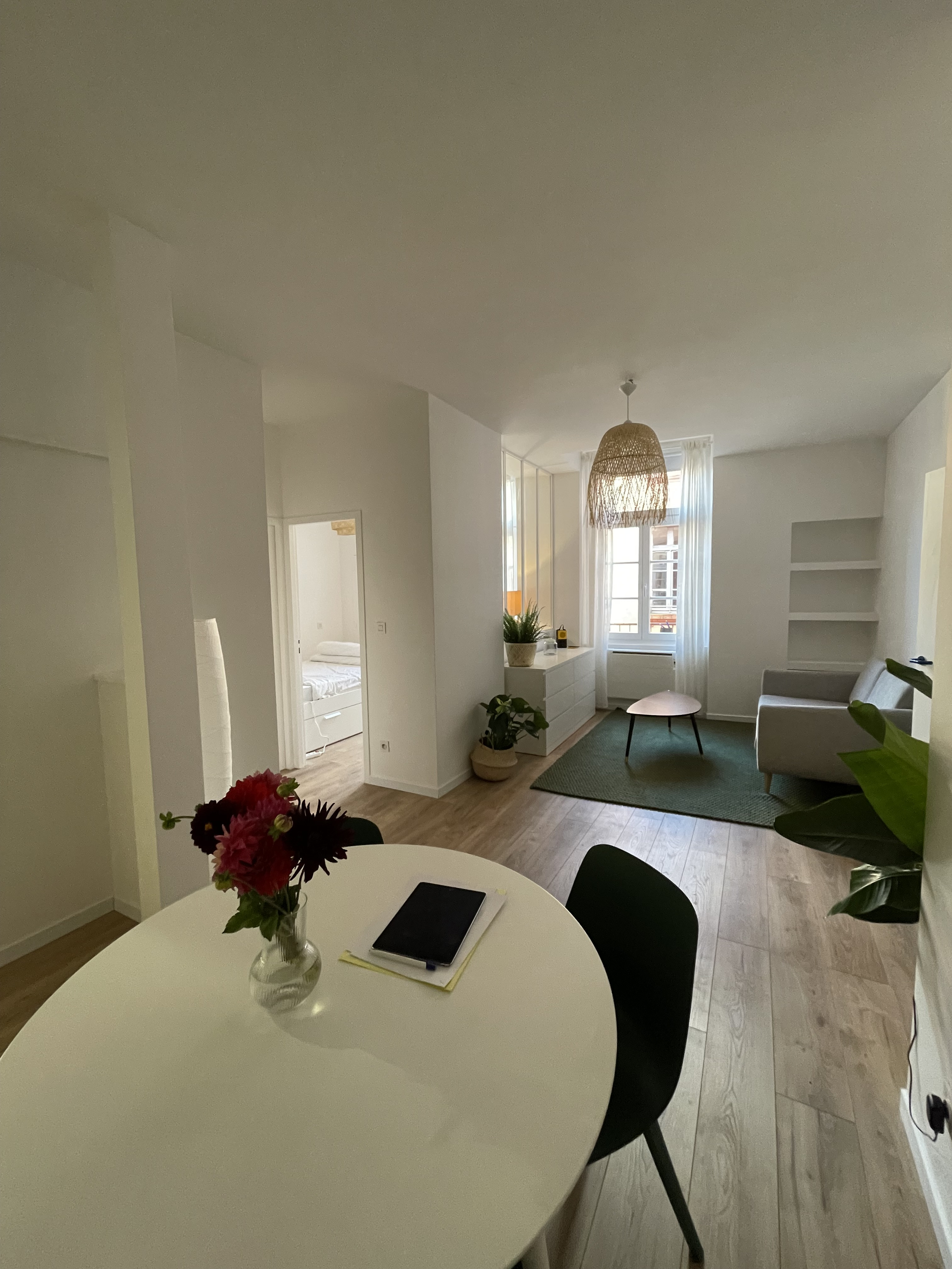 Faubourg du moustier, situé au 1er étage dans une petite copropriété proche stationnements et commerces, appartement de 65 m2 environ composé d'une chambre sans vis à vis, salle d'eau, toilettes, gran...