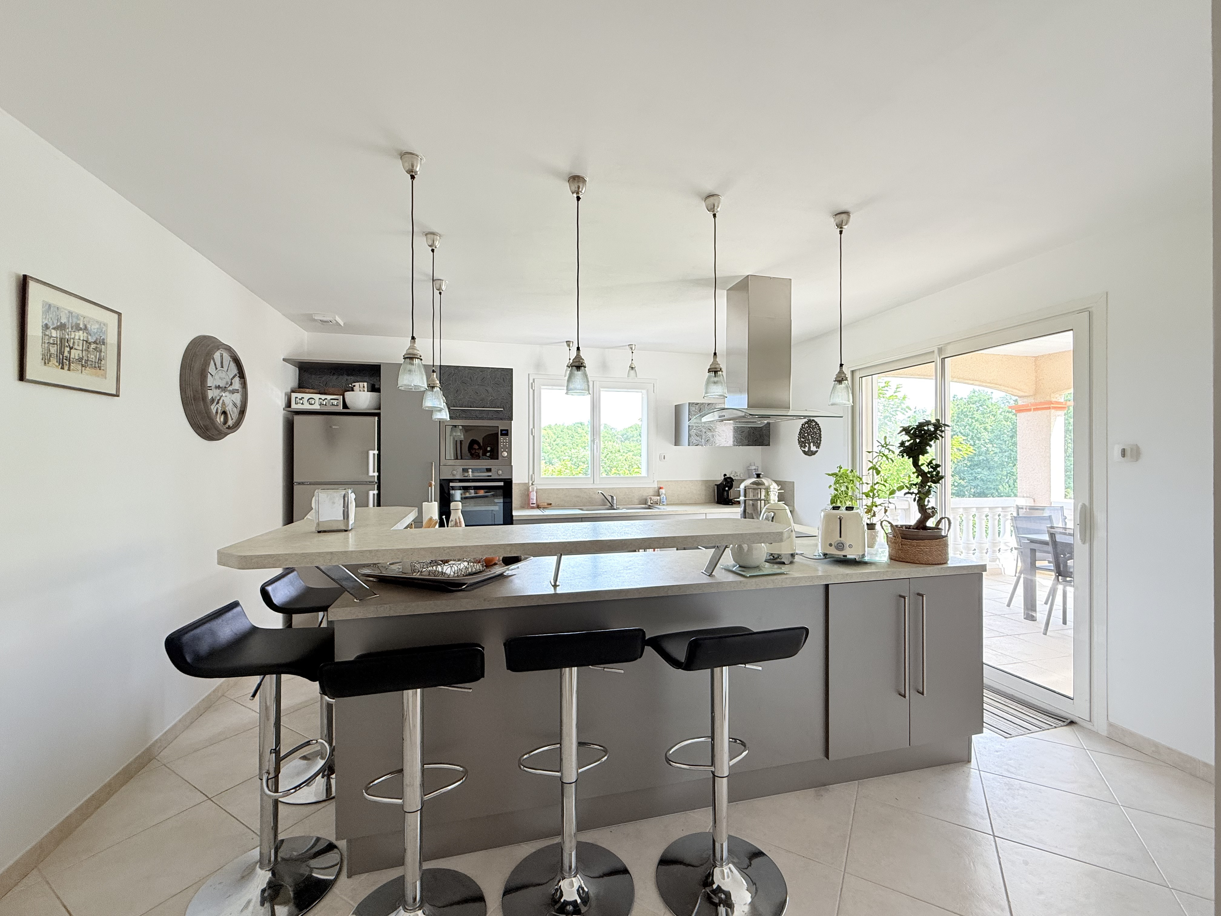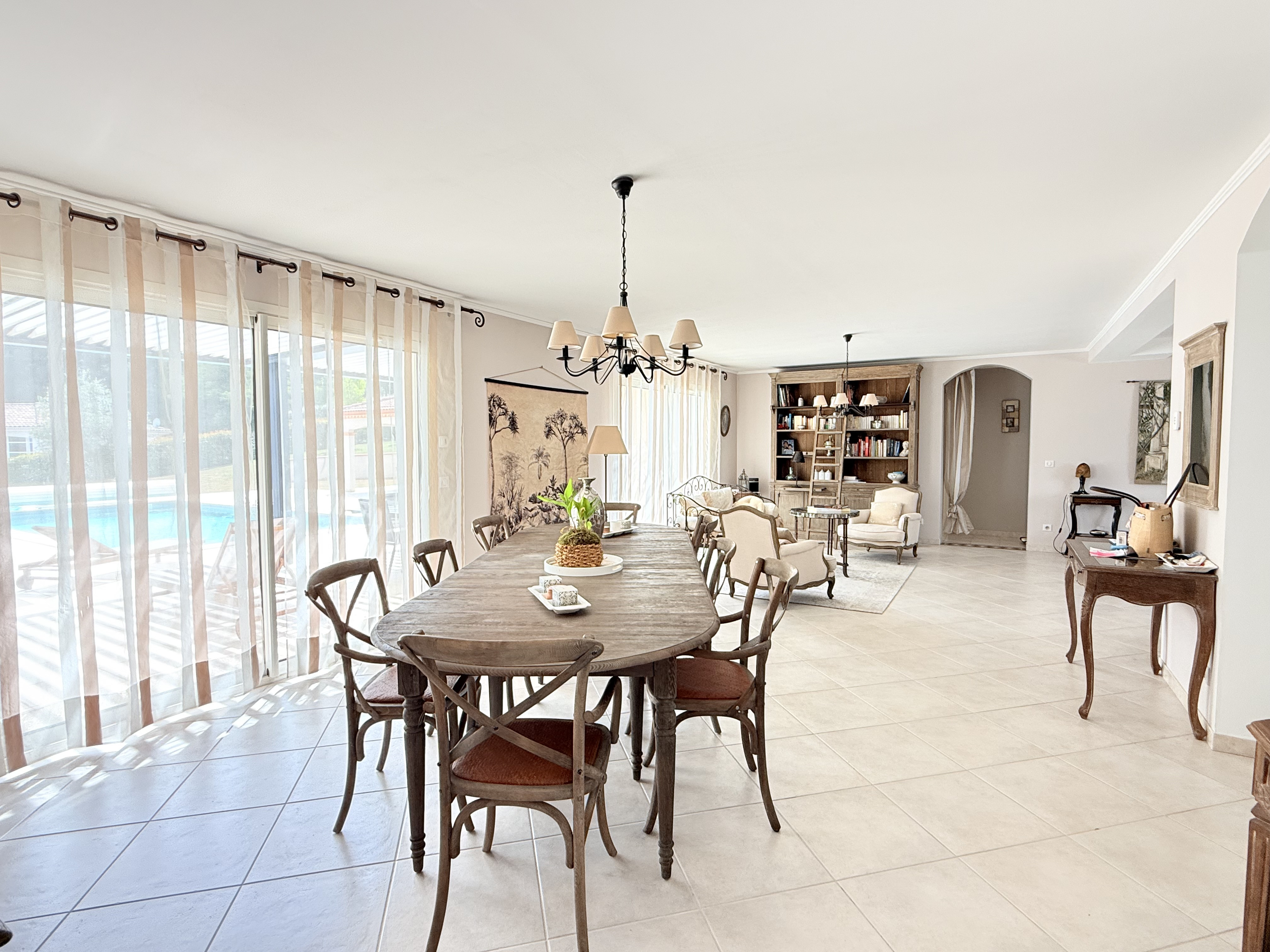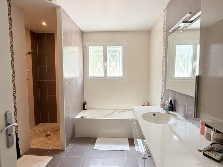 Dès l'entrée, vous constaterez que l'espace ne manque pas. Sur plus de 200 m² habitables, vous profiterez d'une vaste pièce de vie d'environ 60 m² baignée de lumière, d'une cuisine aménagée prolongée par une arrière-cuisine et un espace buanderie, le tout en parfait état.