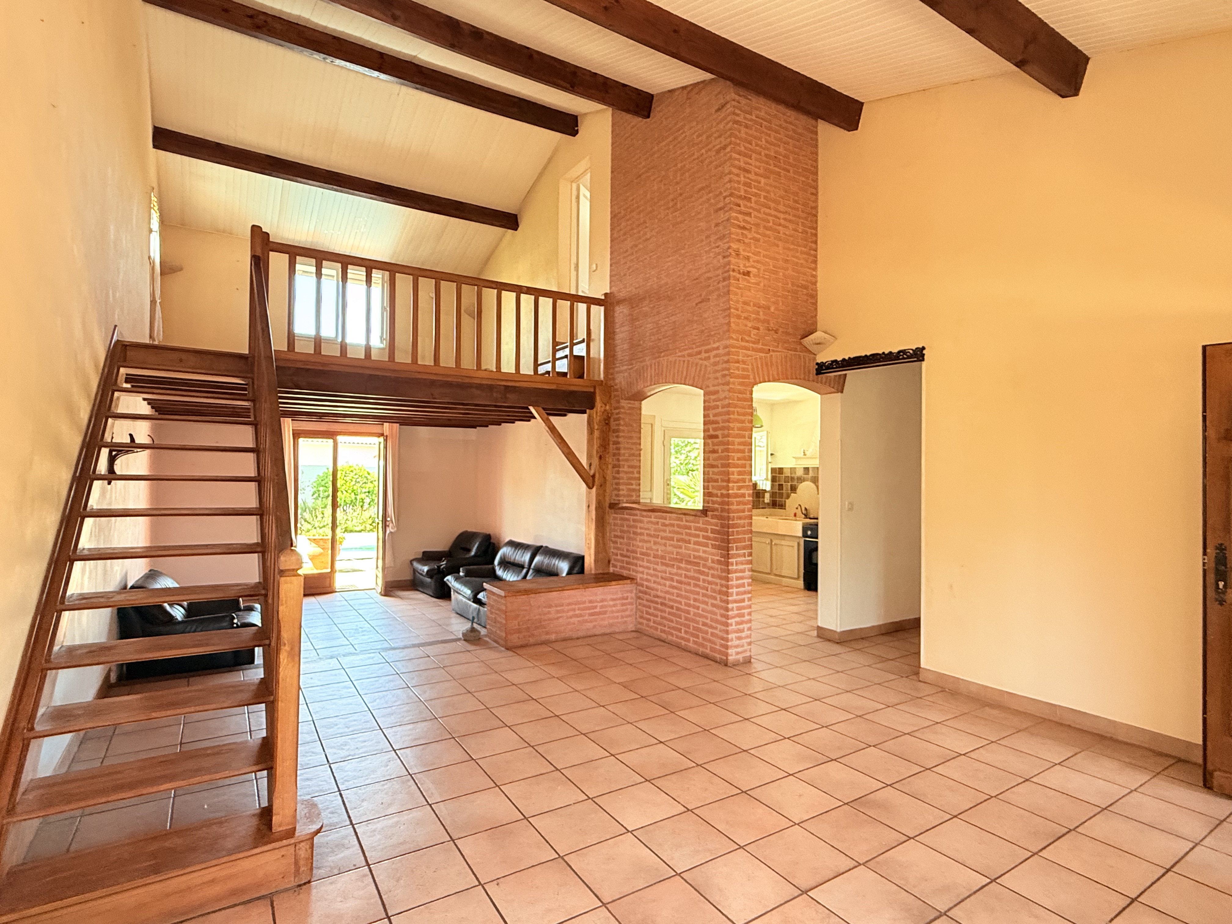 À l'extérieur, vous profiterez d'une agréable terrasse couverte de 15 m², d'une piscine avec son local technique d'environ 6 m², d'un garage de 28 m², ainsi que d'un espace au-dessus du garage facilement aménageable d'environ 28 m² également.