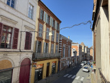 Appartement T1 meublé au 1er étage d'un immeuble situé rue de l'horloge à Montauban. Il est composée d'une cuisine, chambre avec espace salon, cellier, salle de bain avec WC.